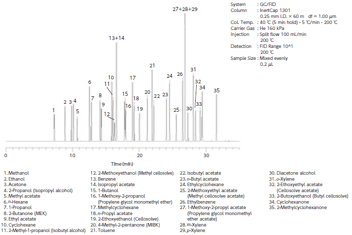 InertCap 1301 is a medium polar column bonded 6 % cyanopropylphenyl and 94 % dimethylpolysiloxane. Compared to InertCap 25, polarity of InertCap 1301 is slightly lower. Cyano groups contained in the stationary phase offer unique selectivity.