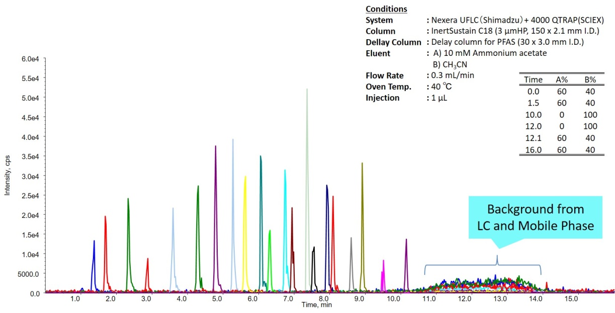 Delay Column for PFAS is packed with high-purity activated carbon, which retains contaminants originating from the mobile phase or the LC system. The elution of the retained contaminants is delayed and thus the effects of the contaminants on the analysis are reduced. This column is quite useful for PFAS (Per- and Polyfluoroalkyl Substances) analysis on LC/MS.
