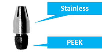 The ferrule, which is assembled from two components, one made of stainless steel, the other one made of PEEK-adapts to variations in the connection type of LC column, eliminating dead volume.