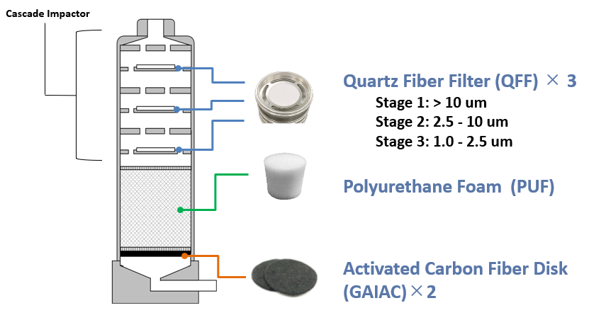 To solve these limitations, the FM4 was designed with an impactor that minimizes the contact between particles and gas and three types of adsorbents, which enable simultaneous collection of ionic and neutral/volatile PFAS.