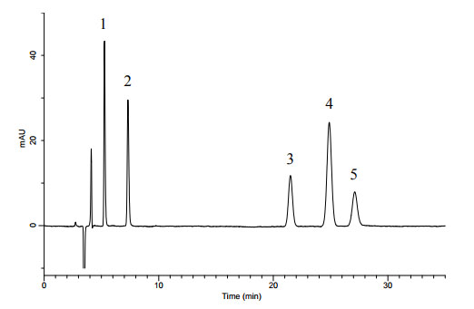 This application also uses the BTB method, but the separation conditions are different from "Organic acid analysis by BTB indicator (1)". This is used when the peak of the target compounds overlap with contaminants under the conditions of "Organic acid analysis by BTB indicator (1)".
